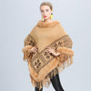 Cet élégant poncho pour femme à fausse fourrure vous donnera un style des plus chics ! Il possède des motifs en diagonal ainsi que des franges et de la fourrure à la base et au niveau du col. Son tissu doux et confortable vous réchauffera avec douceur pendant les froides journées d'hiver. Portez-le avec un pantalon en cuir noir comme sur le modèle pour un look moderne et sophistiqué !